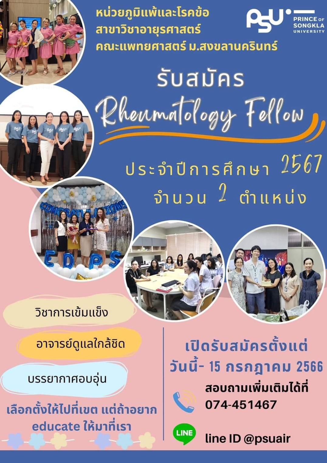สาขาวิชาโรคข้อและรูมาติสซั่มได้รับการจัดตั้งขึ้นเมื่อ พ.ศ. 2538 มีภารกิจหลักเพื่อให้การบริการตรวจรักษาโรคข้อและรูมาติสซั่ม และส่งเสริมกิจกรรมทางวิชาการด้านโรคข้อและรูมาติสซั่ม ในหลักสูตรการฝึกอบรมแพทย์ประจําบ้านอายุรศาสตร์ และได้เปิดหลักสูตรแพทย์ประจำบ้านต่อยอดอายุรแพทย์โรคข้อและ รูมาติสซั่มตั้งแต่ปี 2551 เป็นต้นมา